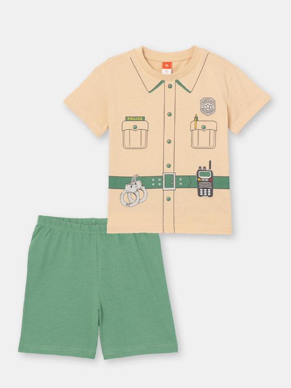 Комплект для мальчика Сherubino, футболка + шорты. Футболка для мальчика с короткими рукавами. Горловина круглая, обработана узким притачным воротником из полотна с эластаном. Перед футболки декорирован принтом. Шорты без боковых швов, с резинкой по талии.