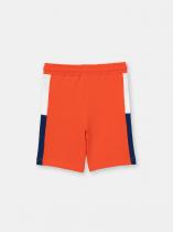 Шорты для мальчика Сherubino без карманов, с боковыми вставками из полотен контрастного цвета. Пояс притачной, с резинкой и функциональным шнуром. Левая передняя половинка шорт декорирована принтом.