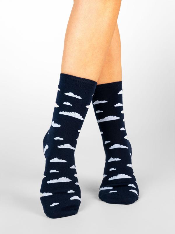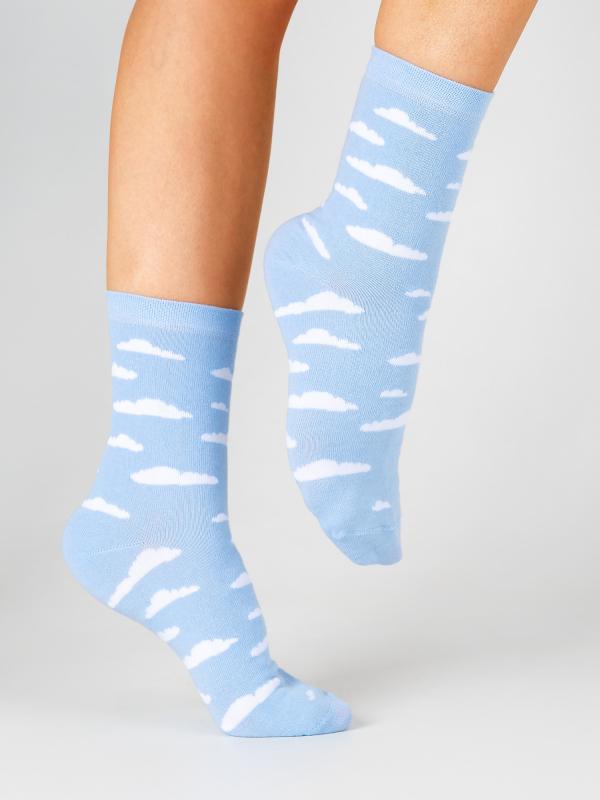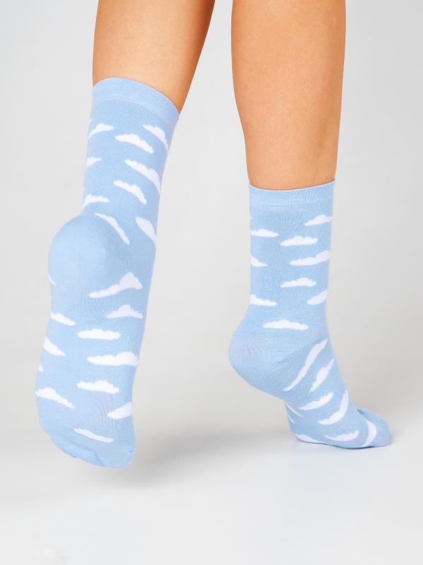 Женские носки с очаровательным рисунком облаков. Модель связана из натурального гребенного хлопка, комфортная, тактильно приятная, подходит для повседневной носки. Милые носочки подчернкут ваш стиль и добавят легкости вашему образу.