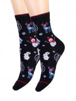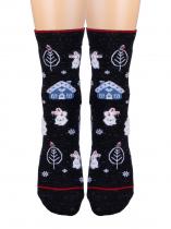 Очаровательная модель женских носков. Связаны из натурального гребенного хлопка. Добавление синтетических нитей в состав изделия обеспечит эластичность и долговечность, а использование нити люрекса придаст блеска и изыска. Носки отлично подойдут как для повседневного использования, так и для ярких праздничных образов. Благодаря сказочному зимнему рисунку модель станет прекрасным подарком для ваших родных и близких.
