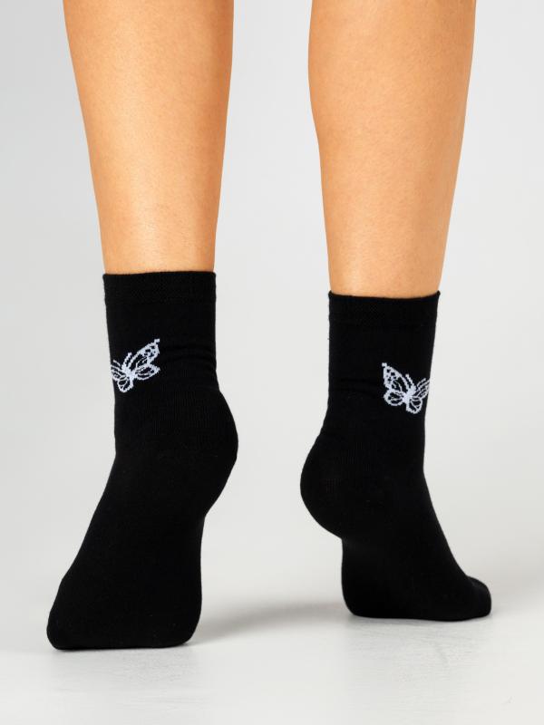 Классическая модель с рисунком бабочки. Натуральный гребенной хлопок в составе изделия создаёт ощущение лёгкости и повышенного комфорта, носки подходят для ежедневной носки. Модель с лаконичным дизайном сочетается с разными стиля в одежде и обуви.