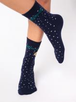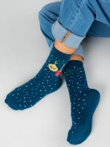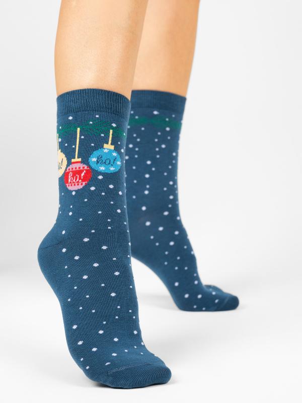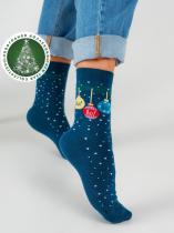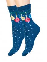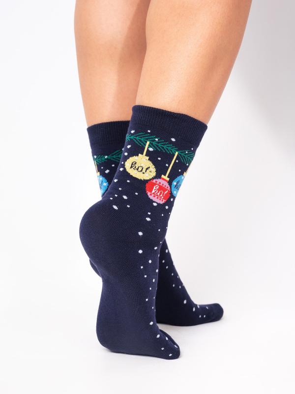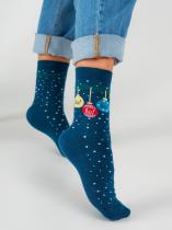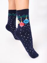 Носки с актуальным новогодним дизайном. Изделие из натурального гребенного хлопка с изображением ёлочных игрушек подарят вам праздничное настроение и согреют ножки морозными вечерами. Носочки из новогодней коллекции станут отличным подарком для себя и для близких.