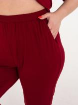 Брюки женкие домашние на манжетах с резинками, с отрезным поясом и боковыми карманами. Пояс отстрочен на поясной машине. Посадка брюк классическая. По объему брюки свободные, не сковывают движения. Брюки выполнены из мягкой, приятной на ощупь, вискозы. Вискоза-натуральное полотно, имеющая высокую гигроскопичность, не электризуется, очень хорошо "