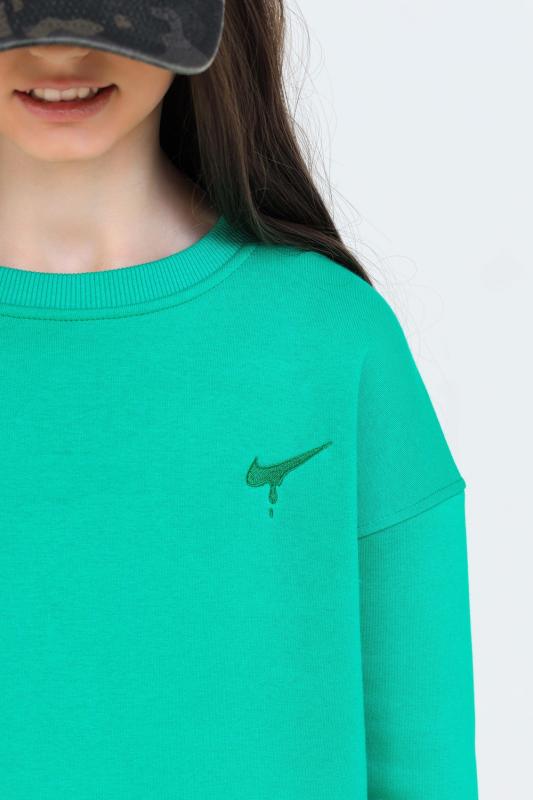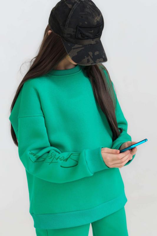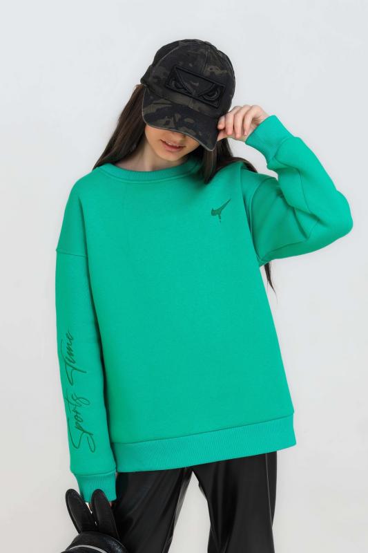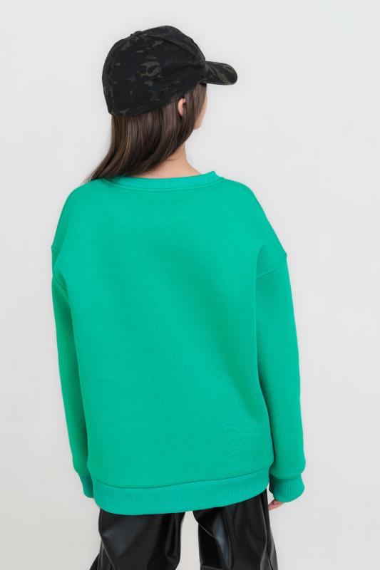 Свитшот для девочки из футера с начёсом. Уютный свитшот для подростка свободного кроя со спущенным плечом. Оверсайз крой не сковывает движений, изделие хорошо держит форму. Модель из трикотажного футера, теплая и приятная к телу. Свитшот одинаково стильно будет смотреться на разных типах фигуры. Красивые насыщенные цвета и минималистичный дизайн сделают эту базовую вещь незаменимой в вашем гардеробе. Эффектно смотрится в сочетании с юбками или любыми джинсами: укороченными и широкими, клеш и бойфрендами. Дополнить это сочетание можно и туфлями на каблуке, и грубыми ботинками. Modestreet создает модные молодёжные образы в стиле современных трендов. В одежде нашего б