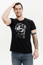 Футболка прямая, свободная, средней длины, с округлой горловиной. Рукав короткий. Горловина обработана эластичной обтачкой.