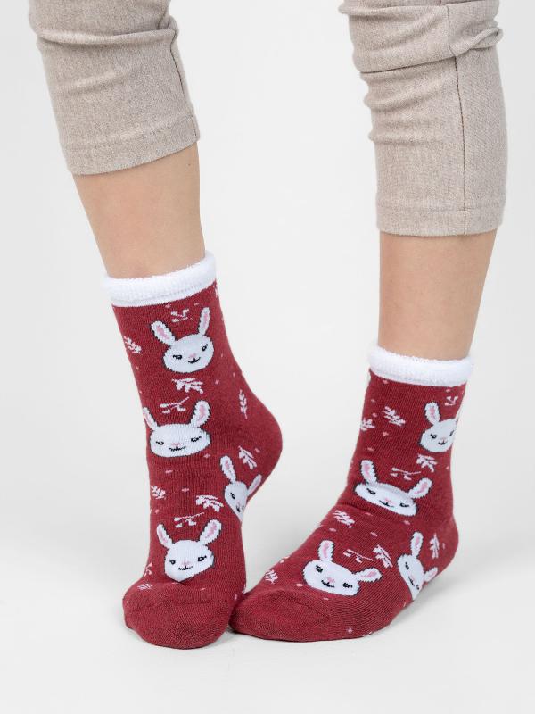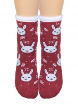 Детские носочки с новогодним дизайном. Теплая модель из натурального гребенного хлопка – находка для холодного сезона, в таких носочках комфортно, тепло и уютно. Рисунок забавного зайца поднимет настроение как взрослому, так и ребенку, а плюшевый бортик на лицевой стороне добавит мягкости. Теплые носочки станут приятным дополнением к новогоднему подарку.