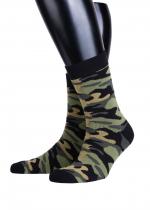 Тёплые мужские носки камуфляжной расцветки в стиле милитари. Плотная хлопковая структура дарит комфорт и высокую терморегуляцию. За счёт полиамидных нитей изделие прочное и устойчивое к растяжениям. Удобство и практичность оценят охотники и рыбаки, носки удачно подойдут в качестве дополнения к основной экипировке. Также тематический дизайн привлекает внимание и в городской среде.