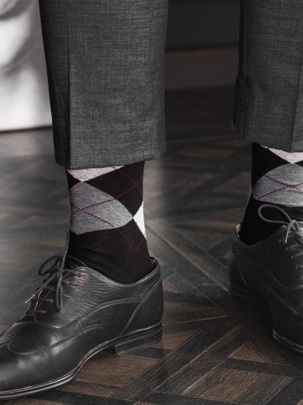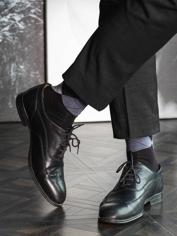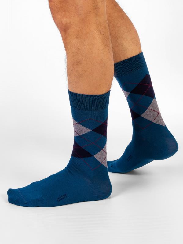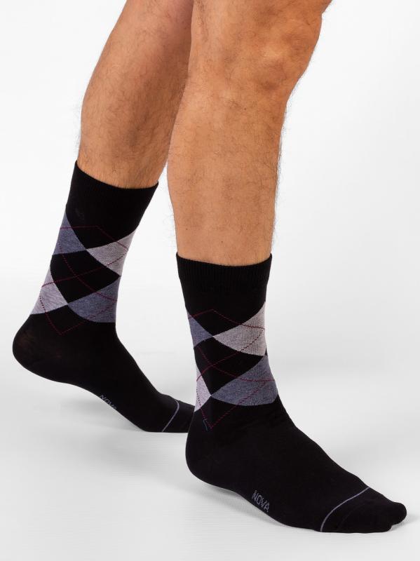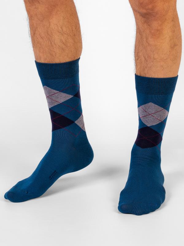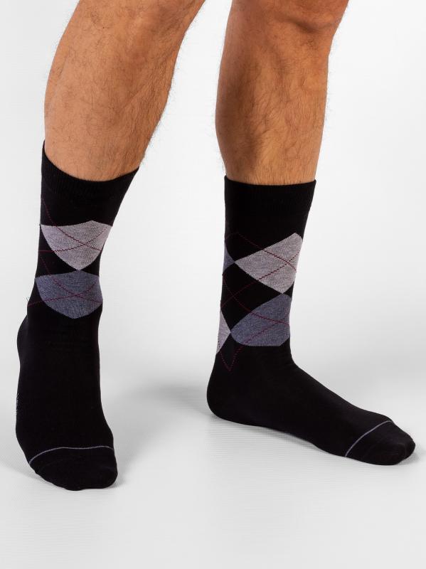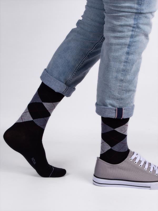 Демисезонные мужские носки с геометрическими рисунками. Изделие связано из натурального гребенного хлопка. Комфортная, мягкая модель – отличный вариант для повседневной носки. Носки с лаконичным рисунком сочетается с разными образами, как с классическими, так и с более неформальными.