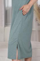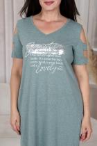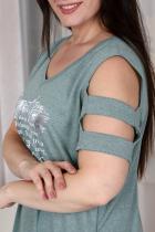 Платье женское, прямого силуэта. Вырез горловины Y-образный. На полочке принт. Рукав не цельный, два хлястика, расположенные через расстояние друг от друга, втачаны в боковые части рукава. В боковых швах внутренние карманы, внизу разрезы.