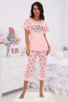 Пижама с цельнокроеным рукавом и контрастной кокеткой с рисунком. Бриджи на плотно прилегающей к ноге манжете. Очень удобный крой. Печать - три яблочка с глитером.