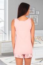 Лёгкая пижамка на бретельках, по груди сборочка. Печать - три яблочка. Шорты на широком притачном поясе 5 см. Сбоку внутренние карманы. Можно использовать как домашний костюм