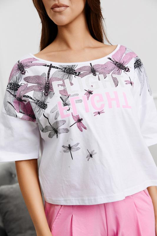 и шорт. Футболка с округлой горловиной. Рукав короткий. Горловина обработана бейкой из основного полотна. Шорты на поясе, с боковыми карманами и лампасами. В верхней части передних половинок по шву притачивания пояса расположены складки. В нижней части боковых швов обработаны разрезы.