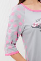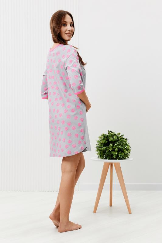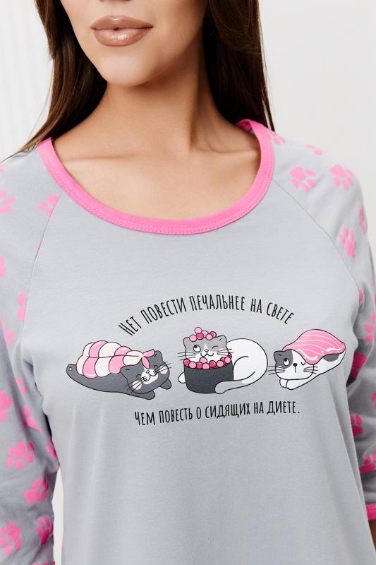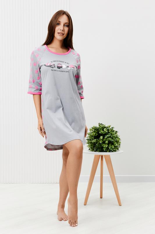 Сорочка женская, состав 100% хлопок. Силуэт сорочки прямой, слегка расширен книзу, горловина и низ рукавов обработаны окантовкой, рукав реглан, низ сорочки обработан на плоскошовной машине, на полочке принт. Идеальный вариант для дома. Изделие легкое в уходе. *Примечание: Длина рукавов реглан измеряется от горловины.