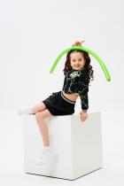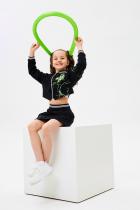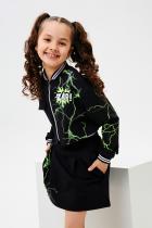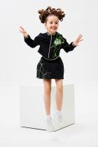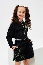 Стильный детский костюм состоит из бомбера и юбки с ярким принтом.