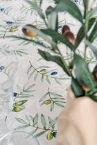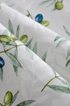 Сактерти из рогожки высокой плотности давно стали выбором номер один многих домохозяек. Спокойный дизайн скатерти отлично подойдет к любому интерьеру и придаст кухне свежести и уюта. Ветви оливы на теплом серо-бежевом фоне создают изысканную картину и придают дизайну легкости. Такая рогожковая скатерть станет отличным кухонным атрибутом и может служить приятным подарком для близких и коллег.