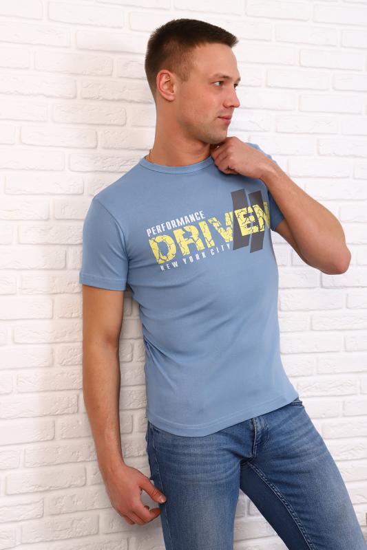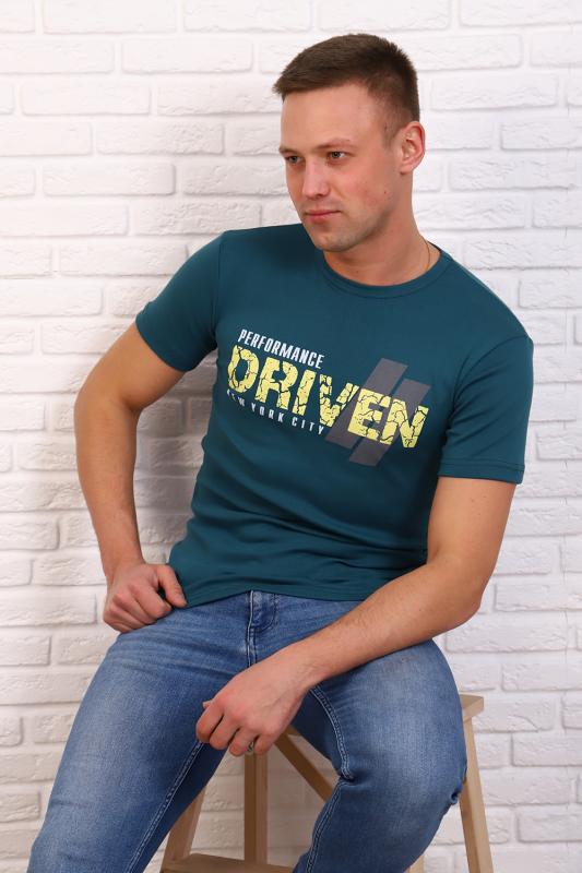 Мужская футболка из кулирки. Короткие рукава, круглая горловина, прямой силуэт. Полочка украшена печатью. Подойдет на любой случай жизни.