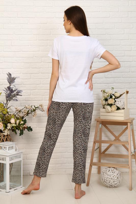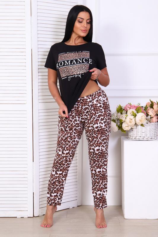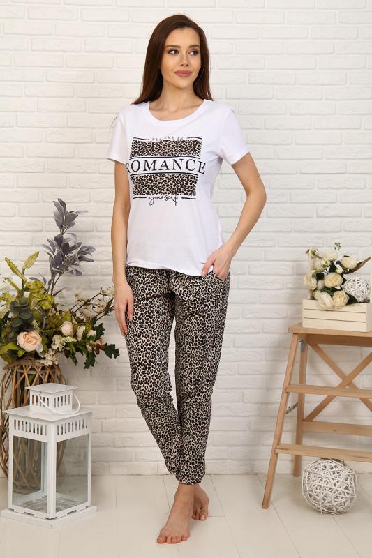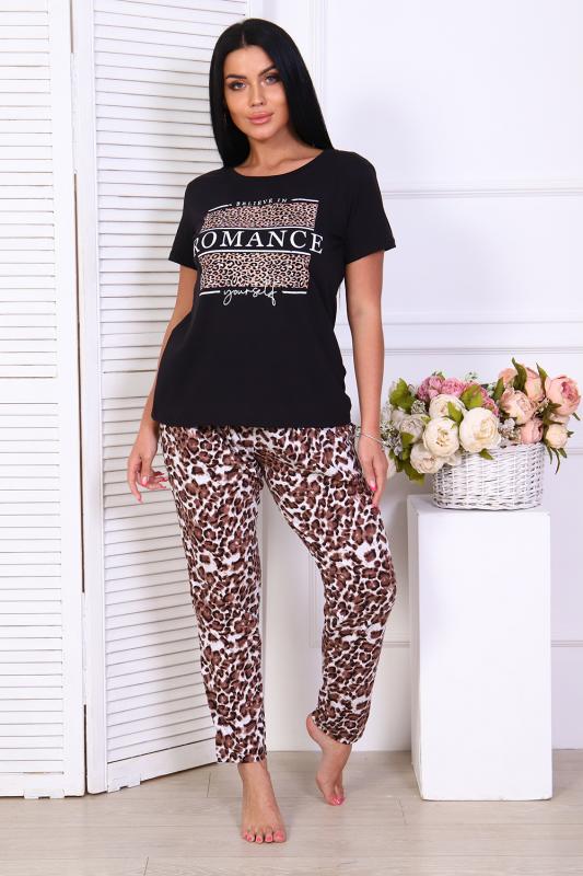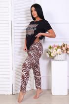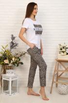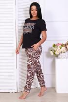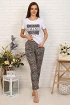 Приятная к телу женская пижама из 100% хлопка. Лучший вариант для домашнего комфорта - натуральные ткани, яркий дизайн и в то же время универсальный стиль позволяет использовать этот костюм как домашний так, и прогулок в теплую приятную погоду. В комплект входят два изделия, сшитые из кулирки.