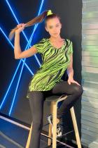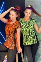 Комплект состоит из футболки и леггинсов. Леггинсы облегающие, на резинке. Футболка полуприлегающего силуэта, с V-образной горловиной, с удлиненной