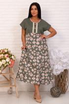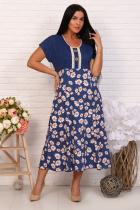 Платье женское из ткани кулирка 100% хлопок. Платье со спущенным рукавом, кокетка однотонная. Отделка на планке натуральным кружевом с двумя пуговицами "