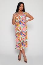 Женское платье - сарафан прямого силуэта из трикотажного полотна (100% хлопок). Горловина и пройма отделана окантовочной беей в цвет изделия. Внизу по боковым швам разрезы. Длина изделия ниже колена. Удобный сарафан, приятный к телу, не стесняет движения, подойдет беременным. Яркие стойкие цвета ткани. Большие размеры широкий размерный ряд 44-62. Для дома и дачи, для отдыха и прогулок, в отпуск, на море.