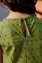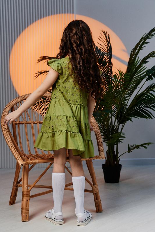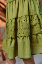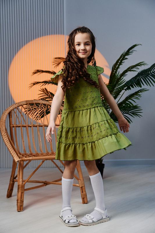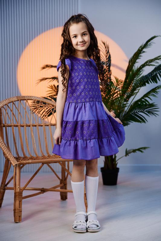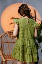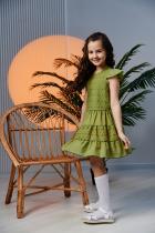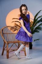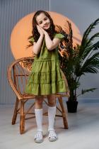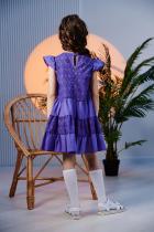 . Горловина округлая, сзади завязки. Три яруса платья из тканей компаньонов. Платье из шитья, в состав которого входит 100% хлопок, ткань комфортна и гигроскопична.
