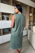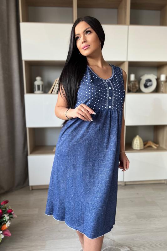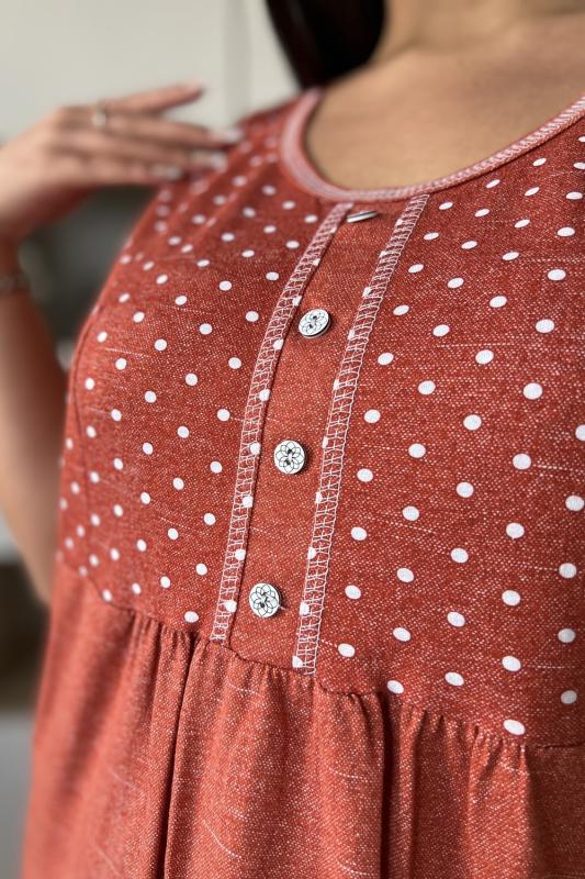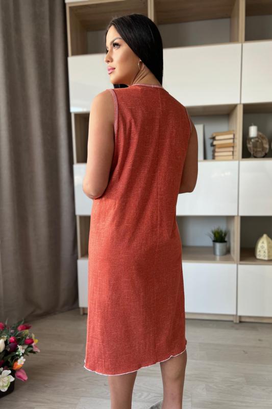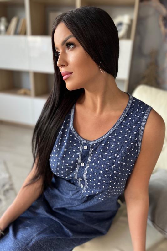 Сорочка женская прямого силуэта, без рукава. В верхняя часть сорочки из отделочной ткани, с рельефами, на планке три пуговицы. Для обеспечения достаточной свободы нижняя часть полочки со сборкой.