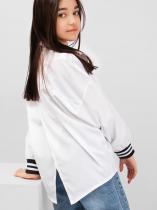 Перец модель оверсайз для девочек и подростков на пуговицах. Удлиненная спинка, плечо приспущено, рукава заканчиваются трикотажной манжетой. Блузка прекрасно сочетается как с брюками, так и с юбкой, подчеркнет индивидуальный стиль девочки, и разнообразит ее повседневный школьный образ.