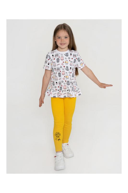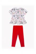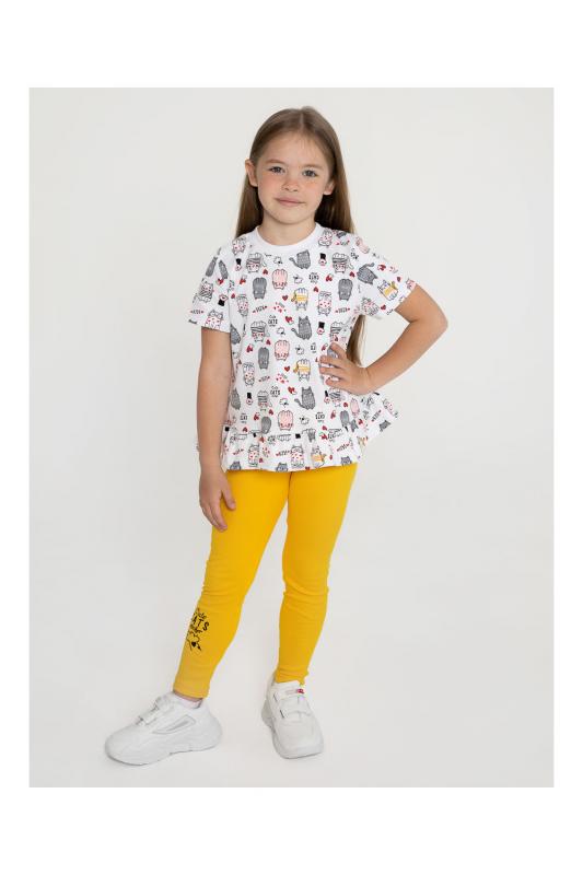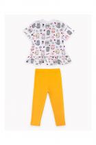 для более старших девочек, состоящий из футболки и лосин, предназначен для летней прогулки. Отличный вариант на каждый день.Лосины оформлены принтом-шелкография на ткани