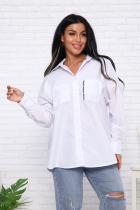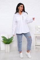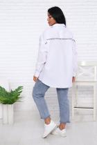 Рубашка женская оверсайз на пуговицах, с воротником, рукав длинный с манжетом, низ рубашки закругленный (спинка на 2 см длиннее полочки), 2 кармана на груди, на левом кармане и на кокетке на спине нашита отделочная репсовая лента с печатью (внимание! Утюжить с изнанки). Длина рукава измерена от плечевого шва.