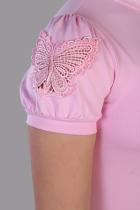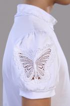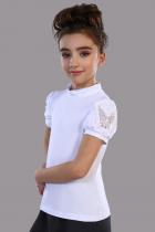 Яркая и нарядная блузка для девочки с короткими рукавами от бренда Jersey-Lab покорит сердце каждой маленькой модницы!Стильная детская рубашка с кружевом украшена нежными аппликациями с бабочками на рукавах. Это придает оригинальный стиль этой блузке. Нежные рукава-фонарики и кружевной воротник-стойка создают легкий и воздушный образ. Водолазка идеальна как повседневная школьная форма для детей.
