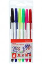 Набор шариковых ручек обеспечивают лёгкое и мягкое письмо. Быстро высыхающие чернила не размазываются и имеют насыщенные цвета. Прозрачный корпус. В составе набора 6 цветов чернил.