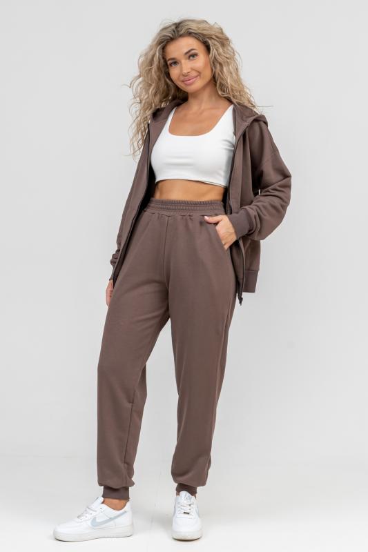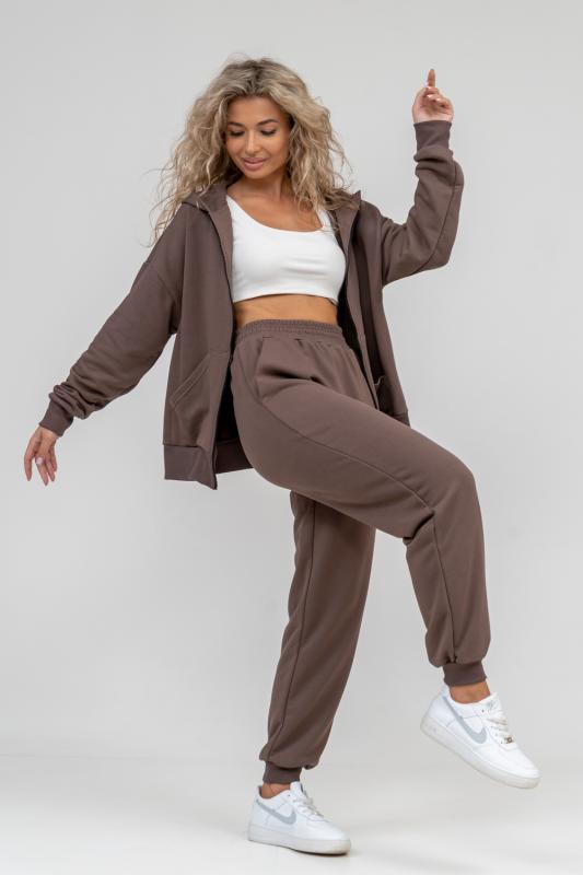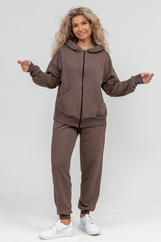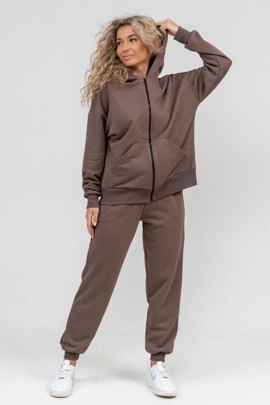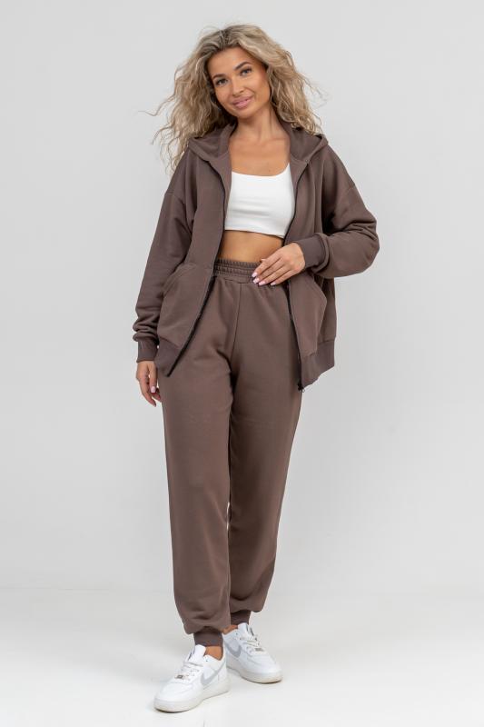 свободного силуэта, которую дополняет: рукав с актуальной сейчас спущенной линией плеча, удобные карманы кенгуру и манжеты. Молния выполнена из качественных пластиковых зубьев закрепленных на прочной тесьме, что обеспечивает плавное скольжение бегунка. А также удобные брюки, которые дополнены вместительными боковыми карманами, поясом выполненным на специализированной поясной машине и манжетами выпол