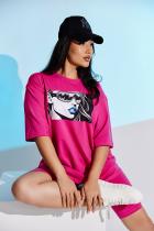 Костюм женский - футболка свободного кроя и облегающие бриджи выполнен из кулирки с лайкрой. Спереди на футболке оригинальный принт. Горловина обработана бейкой, низ изделия и рукав подшиты. Костюм очень удобный и приятный к телу, идеально подойдет как для дома, так и для прогулок и отдыха.