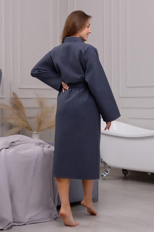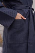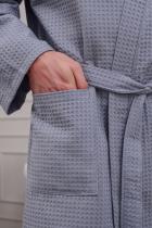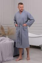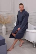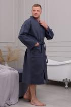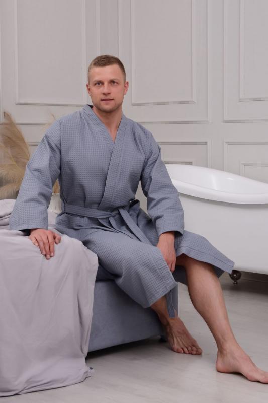Домашний вафельный халат от бренда Ашматекс - неотъемлемая часть комфортной и уютной домашней атмосферы. Он не только выглядит стильно и элегантно, но и представляет собой прекрасный выбор для тех, кто ценит комфорт и удобство. Рукав удлиненный и кимоно - стиль делают этот халат унисекс, что позволяет его использовать как мужчинам, так и женщинам. Размерный ряд с 44-46 по 60-62. Плотность вафельного полотна 242 гр. Карманы накладные. Воротник планка. Доступна возможность розничного приобретения. При первой стирке изделие