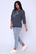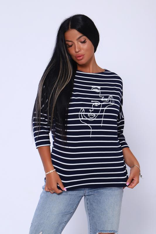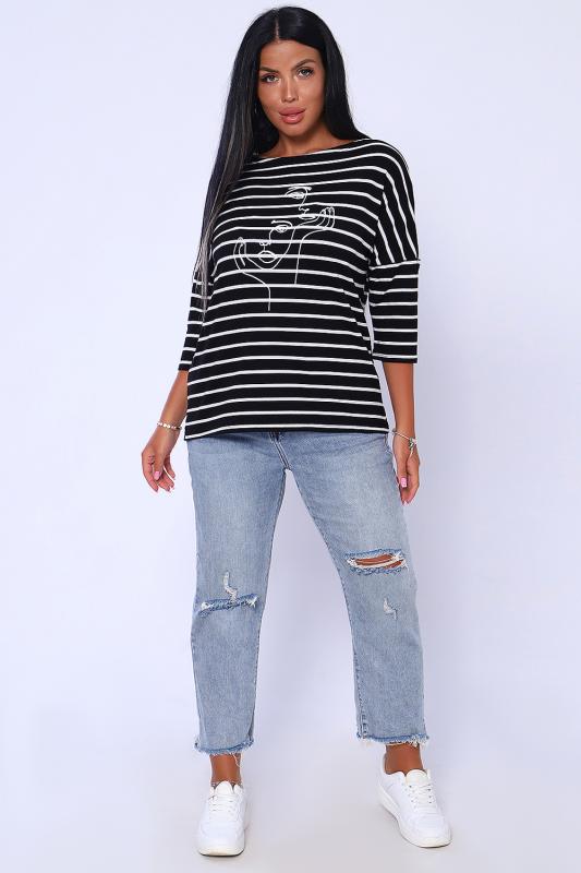Лонгслив с оригинальным принтом из нежной, приятой к телу вискозы в полоску. Горловина в виде "