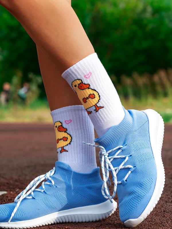 Детские демисезонные носки. Главное преимущество модели - это то, что она связана из натурального гребенного хлопка, благодаря этому, очень мягкая, воздухопроницаемая. Широкая спортивная резинка плотно облегает ногу, не доставляя дискомфорт. Носки с ярким рисунком уточки подчеркнут ваш стиль и оригинальность.
