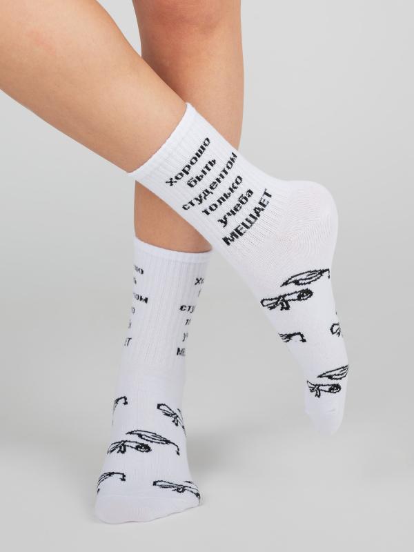 Подростковые носки с надписью «Хорошо быть студентом, только учеба мешает». Демисезонная модель с ироничным и забавным дизайном. Натуральный состав изделия обеспечит комфорт, отведёт влагу при повышенной активности и защитит кожу ног от раздражения. Прекрасный аксессуар, который дополнит и добавит стильные акценты в образ каждого студента.