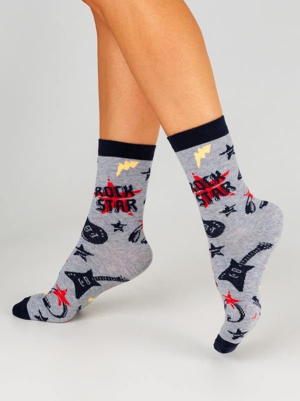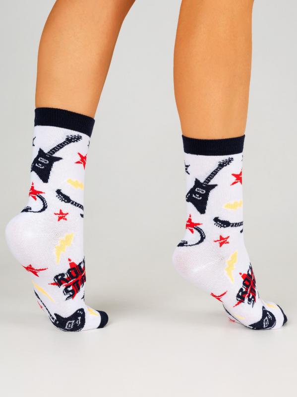 Детские демисезонные носки. Мягкая модель, связанная из натурального гребенного хлопка, комфортная, дышащая, подходит для повседневной носки. Носки в стиле рок-н-ролл можно сочетать с разными образами, как с классическими, так и более неформальными.