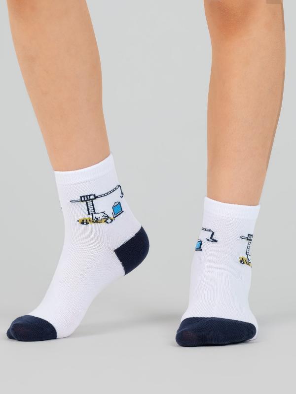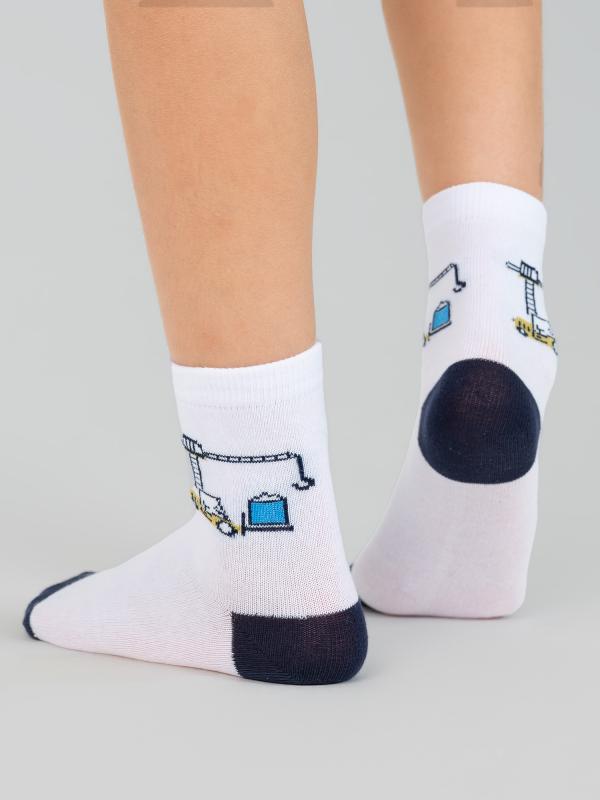 Детские носки с рисунком подъёмного крана. У модели мягкая основа из натурального хлопка, которая подарит ножкам ощущения уюта и максимального комфорта. Изделие обладает воздухопроницаемостью и защитит нежную кожу ног от раздражений. Забавный дизайн порадует и впечатлит юного обладателя.