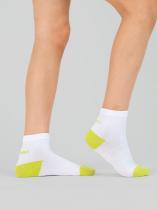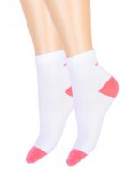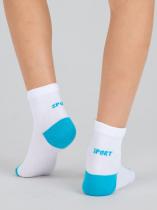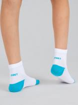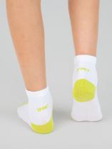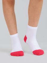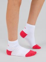 Спортивные детские носочки из высококачественного гребенного хлопка. Классический белый фон разбавлен яркими пяткой и мыском. Сзади на паголенке располагается надпись "
