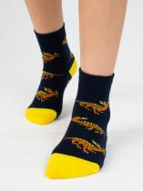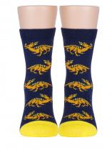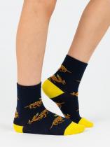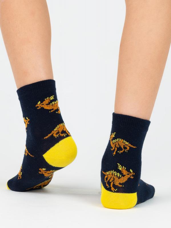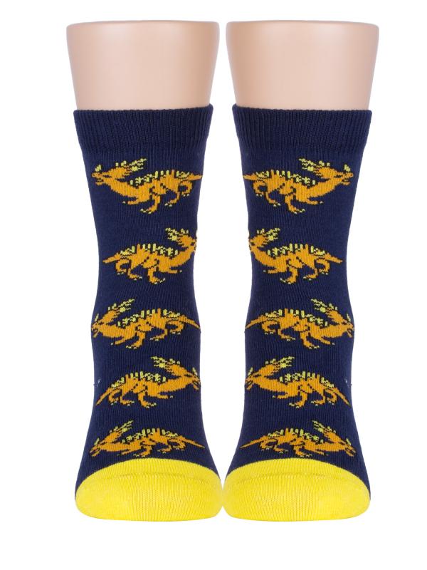 Детские носки с динозаврами, изображенными по всей длине изделия. Модель из натурального хлопка подойдёт для повседневного использования и активной деятельности, обладает воздухопроницаемостью и устойчивостью к истиранию. Мягкая резинка надёжно фиксирует изделие и не сдавливает ножку ребёнка. Такие носочки порадуют юного обладателя и идеально впишутся в любой образ.