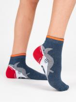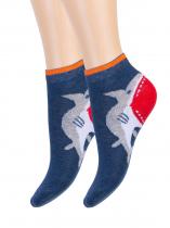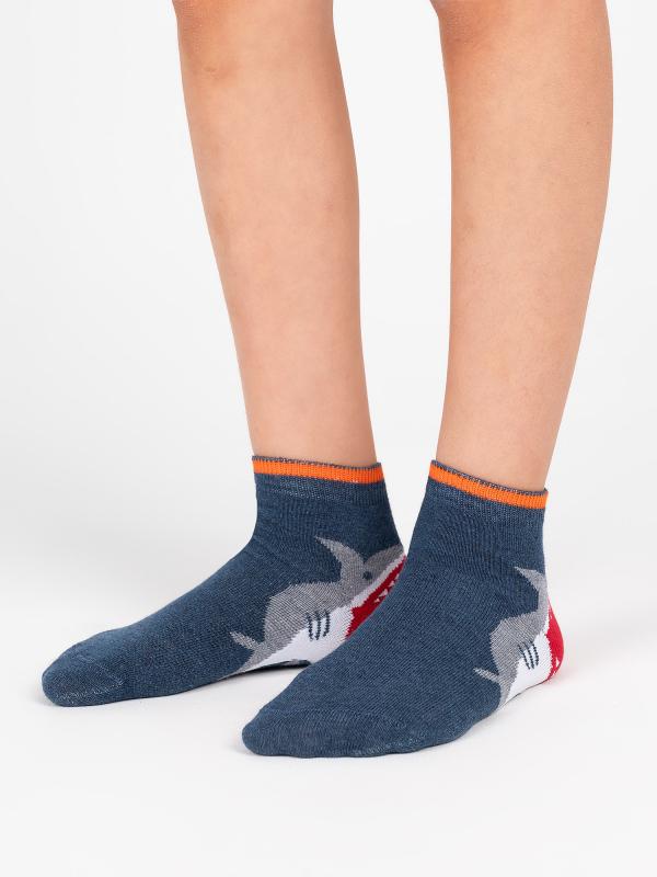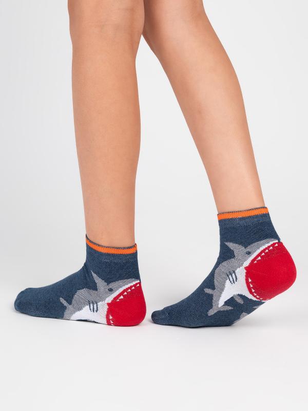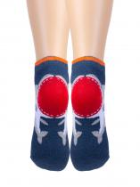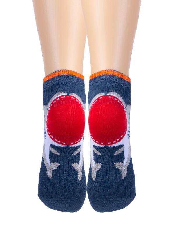 Плотные детские носочки с фантазийным рисунком — акула ест пятку. Нестандартное сюжетное решение и сочные цвета привлекают внимание. Комфортный состав с высококачественным гребенным хлопком в основе создаёт прочное, уютное, дышащее изделие для ваших деток.