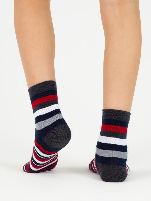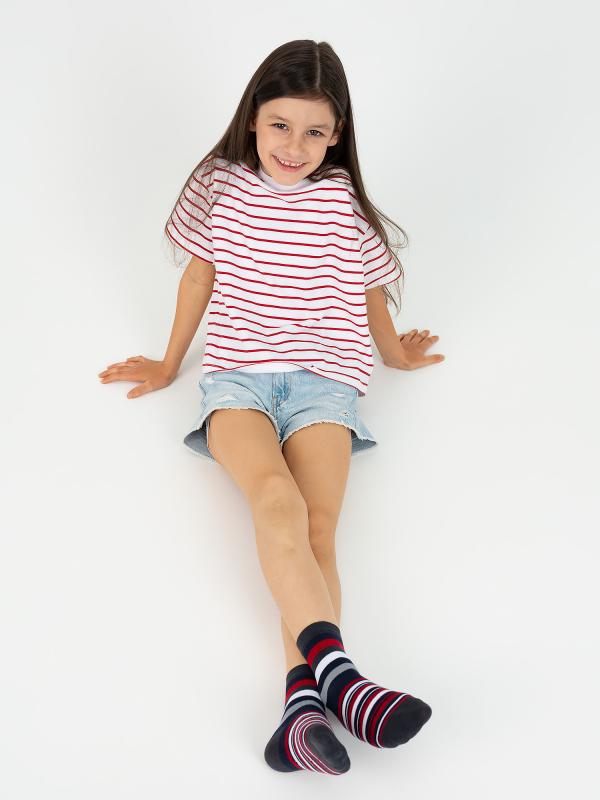 Детские носки в полоску. Натуральный хлопок в составе и эластичная резинка, не сдавливающая ногу, обеспечат лёгкость и комфорт каждому шагу ребёнка. Носки идеально подойдут для повседневного использования, а яркий полосатый рисунок добавит красивые акценты и оживит любой образ.