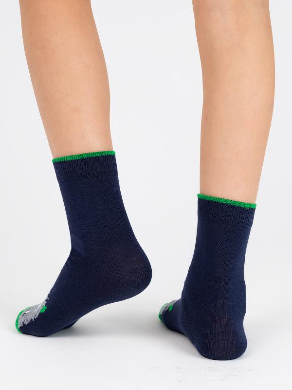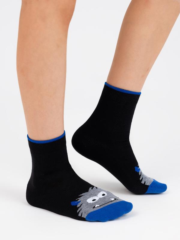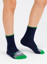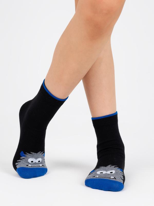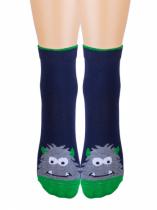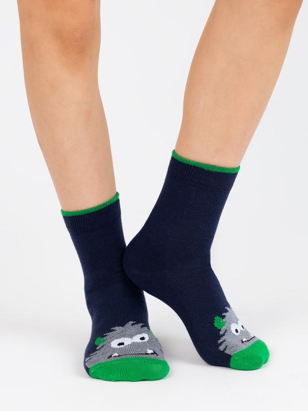 Детские носки с монстром, изображенным на мыске изделия. Связаны из натурального гребенного хлопка, благодаря чему ребёнок будет чувствовать себя комфортно в течение всего дня. Модель отличается своей эластичностью и устойчивостью к истиранию. Фантазийный рисунок поднимет настроение и дополнит яркими красками повседневный образ.