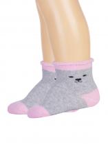Зимние носки для малышей. Мягкая плюшевая основа из натурального гребенного хлопка подарит ощущения мягкости и уюта, защищая кожу ножек от раздражений. Нежное сочетание цветов сделает даже самый простой наряд более привлекательным, а забавная мордочка на паголенке поднимет настроение. Идеальный вариант для самых маленьких ножек в холодную пору.