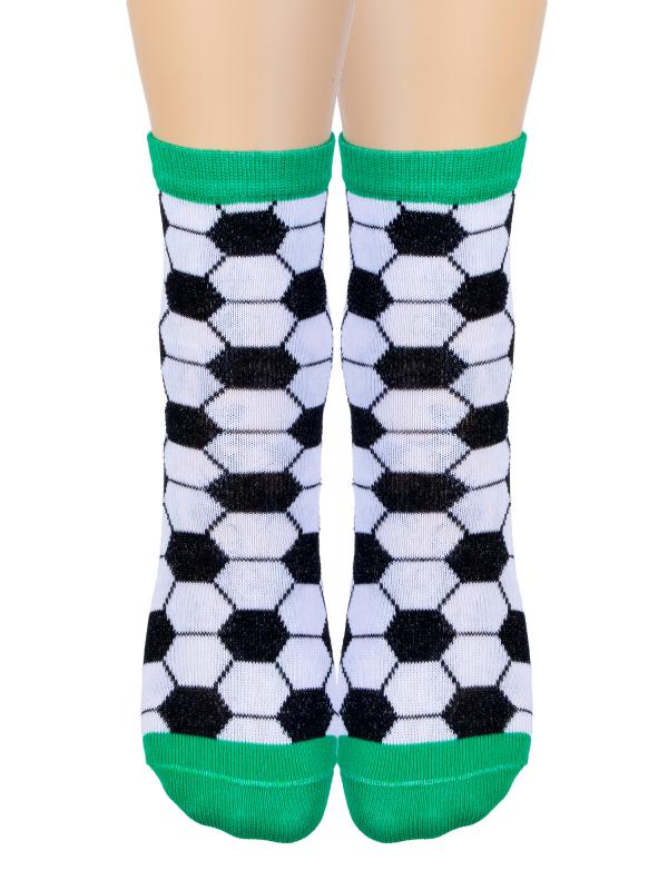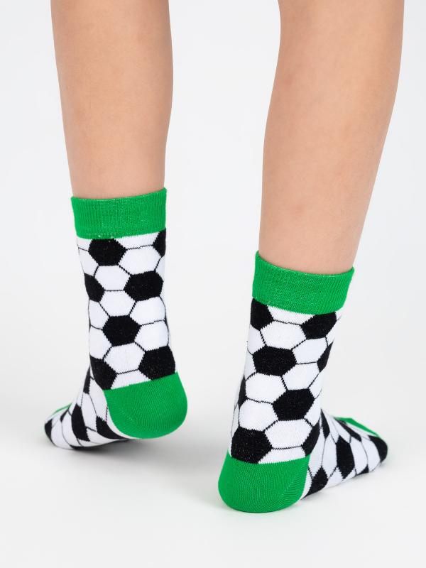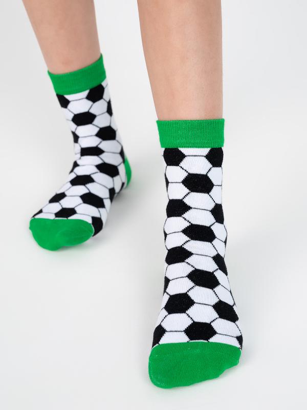 Детские носочки с характерным принтом из чёрно-белого футбольного мяча по всей длине носка. Цветовое сочетание создаёт футбольное настроение. Благодаря натуральному составу носочки дышат и дарят уют ножкам ребёнка на протяжении дня.