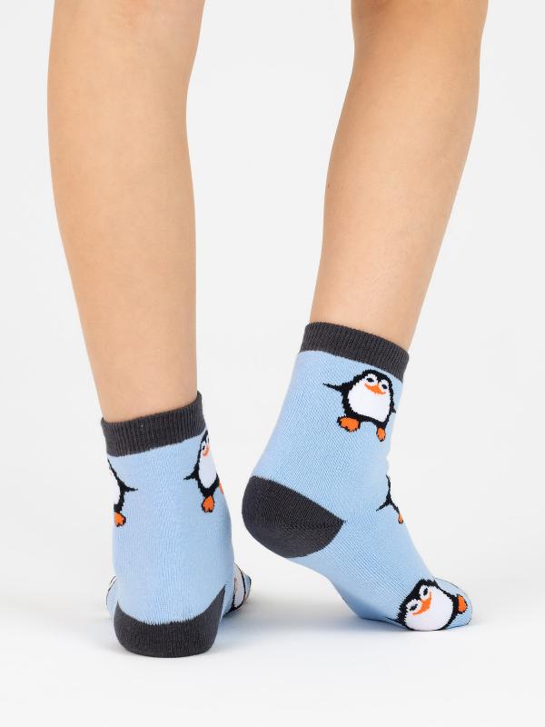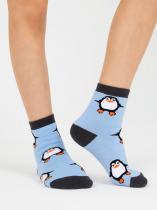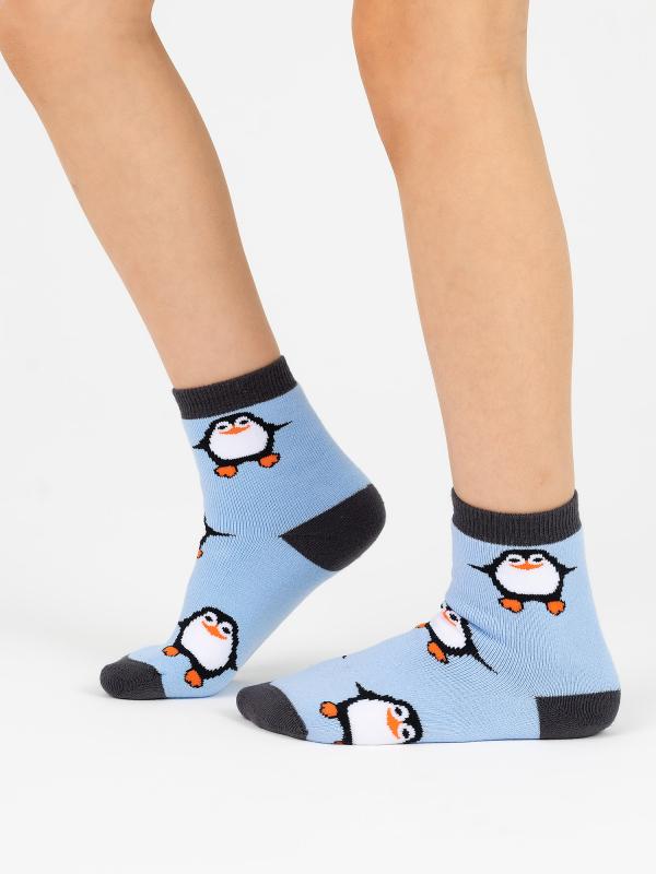 Детские носочки с рисунком очаровательных пингвинов. Мягкая, теплая модель, связанная из натурального гребенного хлопка. Носочки воздухопроницаемые, впитывают влагу - находка для деток и их родителей.