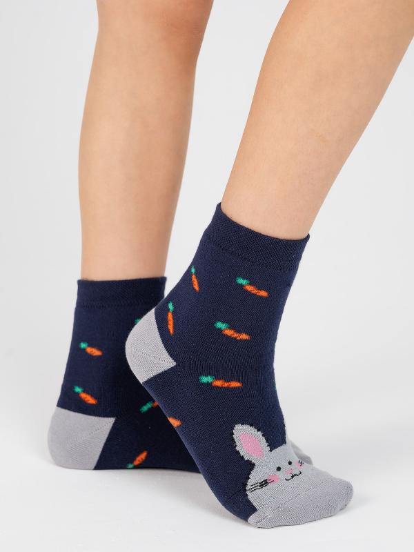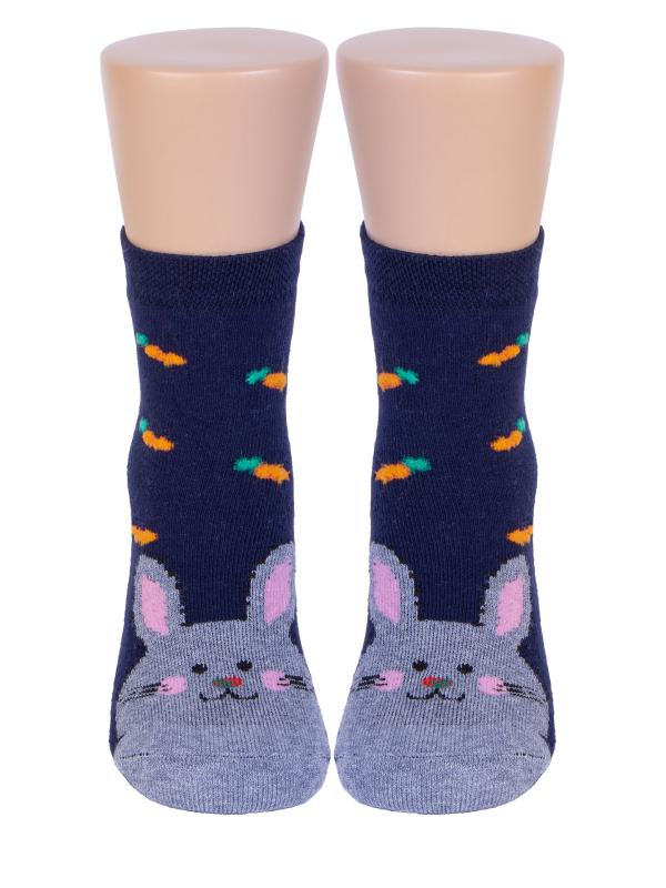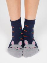 Теплые детские носочки с рисунком зайчика. Модель связана из натурального гребенного хлопка, теплая, комфортная, мягкая, воздухопроницаемая. Милые зайки поднимут настроение как взрослому, так и ребенку. Тёплые носочки – отличное дополнение к подарку.