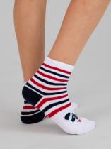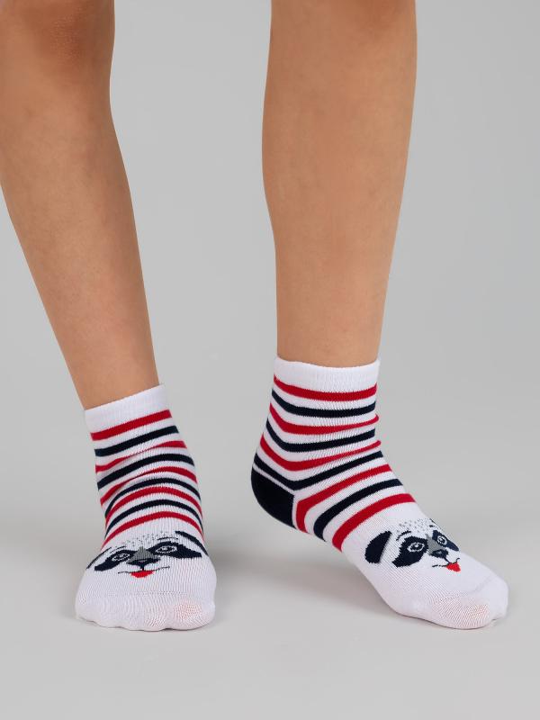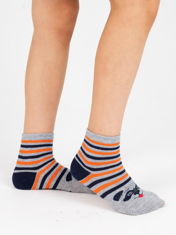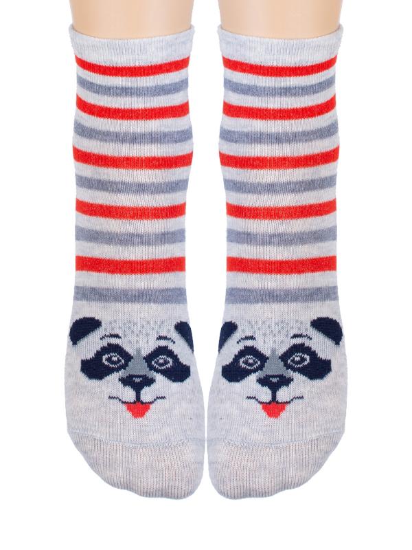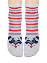Детские полосатые носки. Благодаря натуральному гребенному хлопку в составе модель создаст ощущения комфорта и лёгкости, а добавление синтетических нитей обеспечит эластичность и устойчивость к истиранию. Цветную полоску дополняет мордочка панды – дизайн, который, несомненно, придётся по вкусу каждому ребёнку.