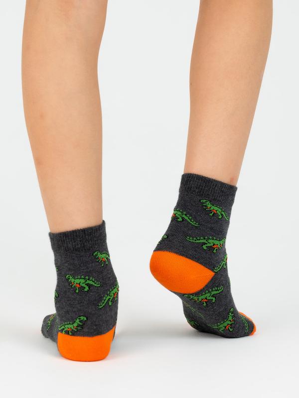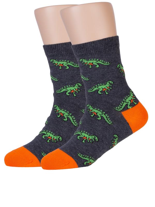 Детские носки с динозаврами, изображенными по всей длине изделия. Благодаря натуральной хлопковой основе изделие подарит ножкам ощущения мягкости и комфорта, при этом обеспечивая отвод влаги и защищая кожу от раздражения. Эластичная резинка надёжно фиксирует носок на ноге. Яркий дизайн подчеркнет индивидуальность и стиль юного обладателя.